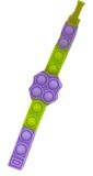 10" soft rubber bubble bracelet, purple, green, and gold. Stress reliever, reusable, washable.