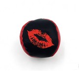 16"x13" black drawstring back sack with large red lip logo.