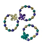 Metallic purple, green, and gold beaded bracelet with single fleur di lis.