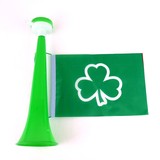 11" Trumpet horn with attached flag, Green with white clover