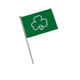8"x5.5" Mini flag on plastic flag pole, Green with white clover