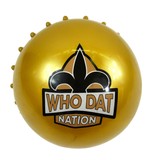 6" Gold inflated spikey ball with black and gold fleur di lis and who dat nation logo.