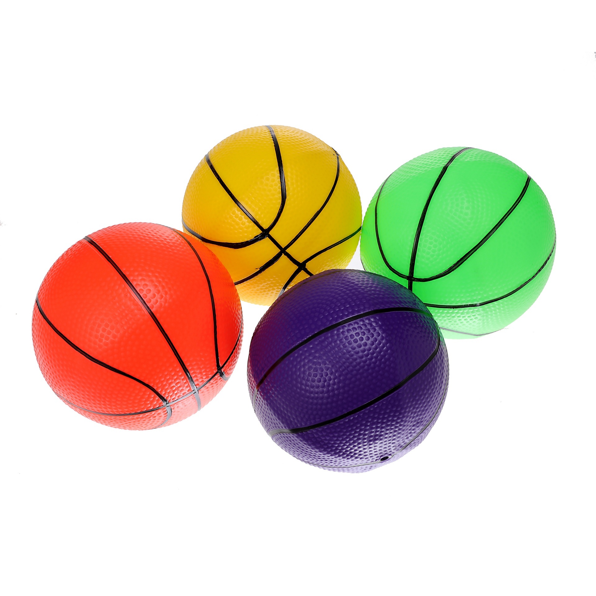 8" Inflated rubber basketball in Purple, green, gold, and orange.