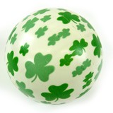 6" White rubber inflated ball with multiple green shamrock logos.