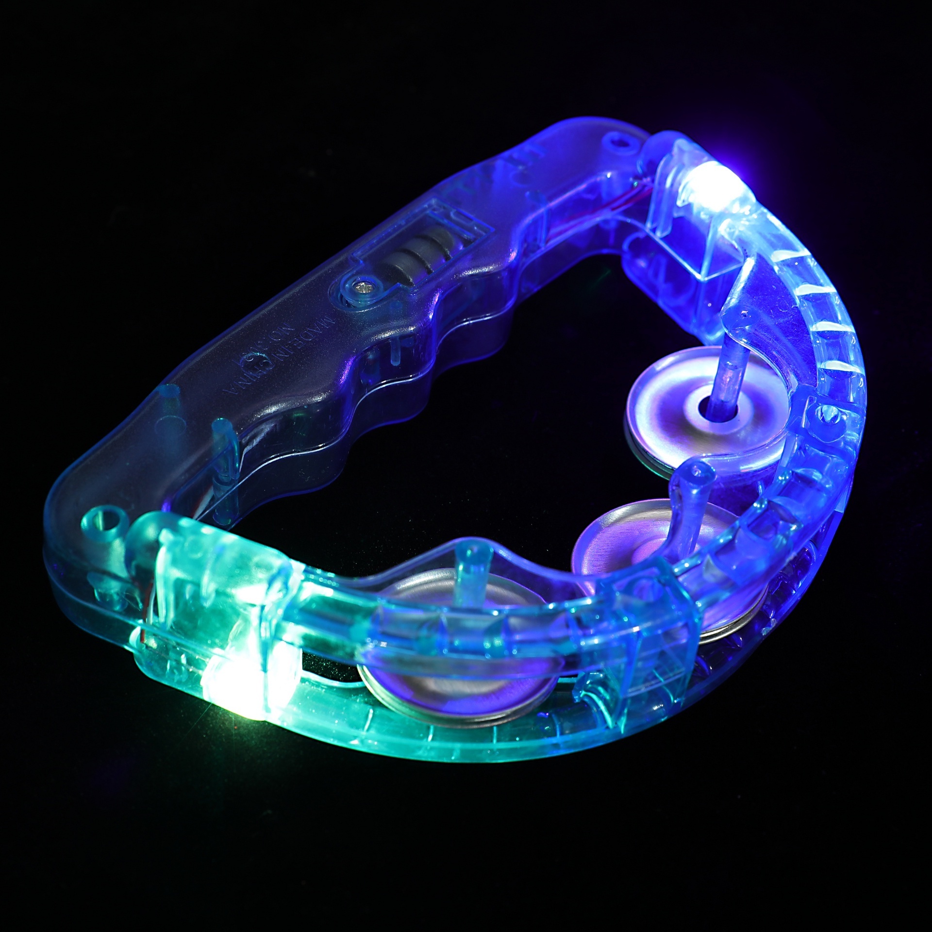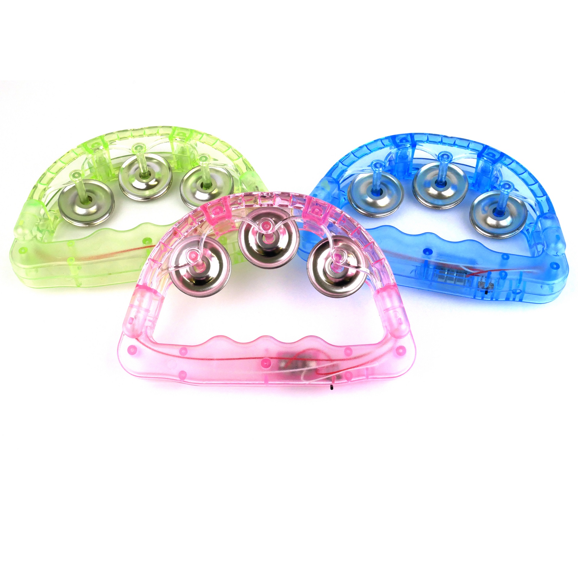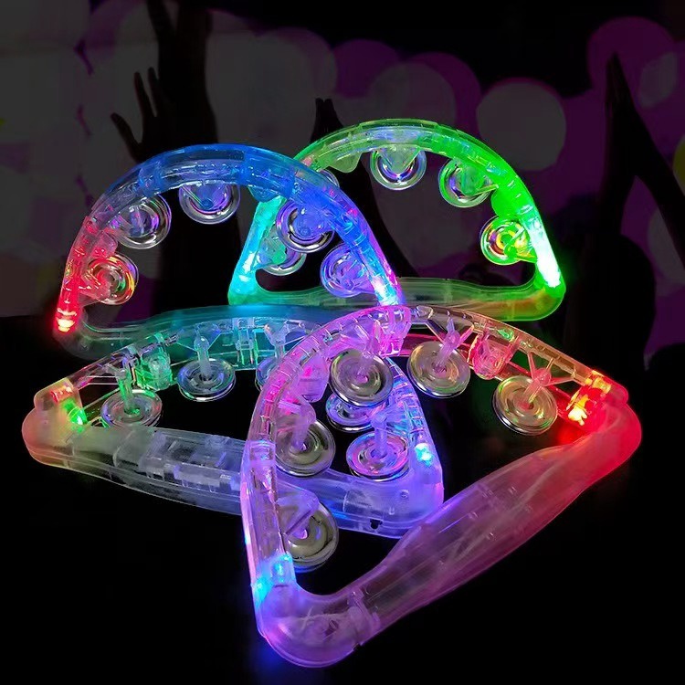 6" LED flashing tambourine, purple, green, and gold