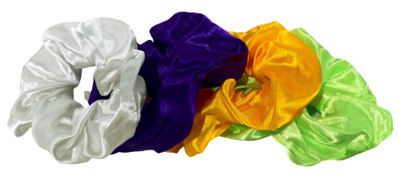 Light up cloth hair scrunchie in Purple, green , gold, and white