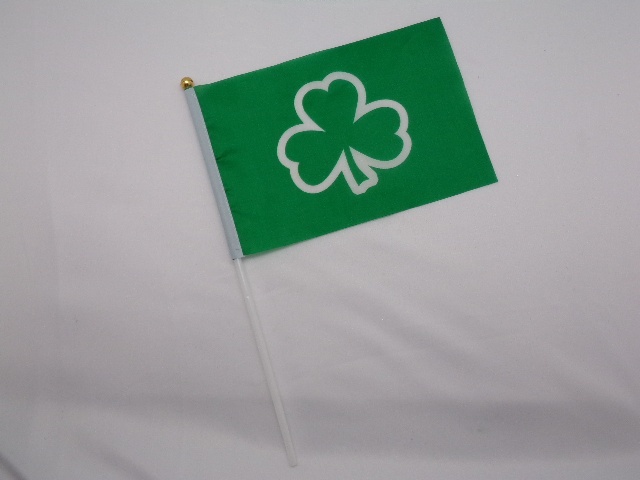 8"x5.5" Mini flag on plastic flag pole, Green with white clover