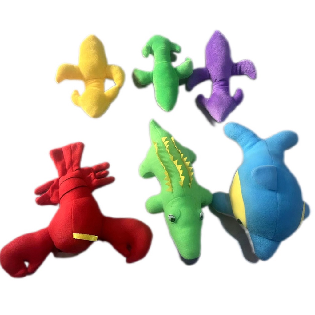 Assorted small plush, Louisiana themed (crawfish, gator, fleur di lis, dolphin, etc)