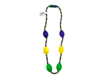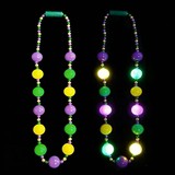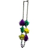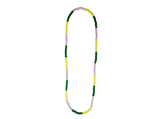 60" Purple, green, and gold LED tassel beads with purple, green, and gold fleur di lis.