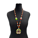 Egyptian goddess profile medallion, with 2 Eye of Ra accent pieces on blue and orange handstrung beads.
