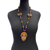 Warrior mask with 2 Z accent pieces on black, gold, and purple handstrung beads.