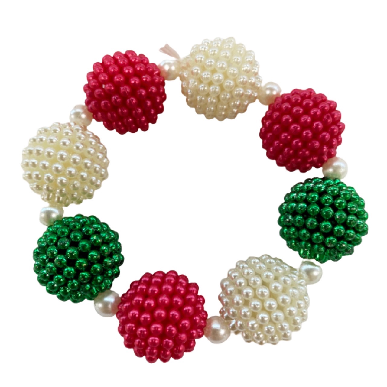 Red, white, and pearl berry shaped bead bracelet.