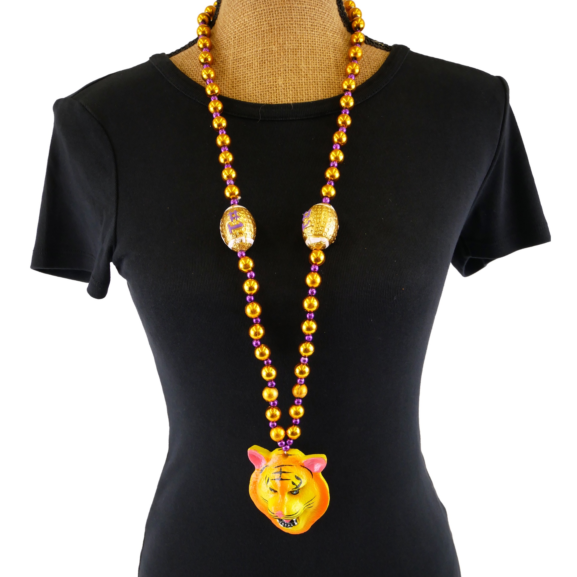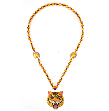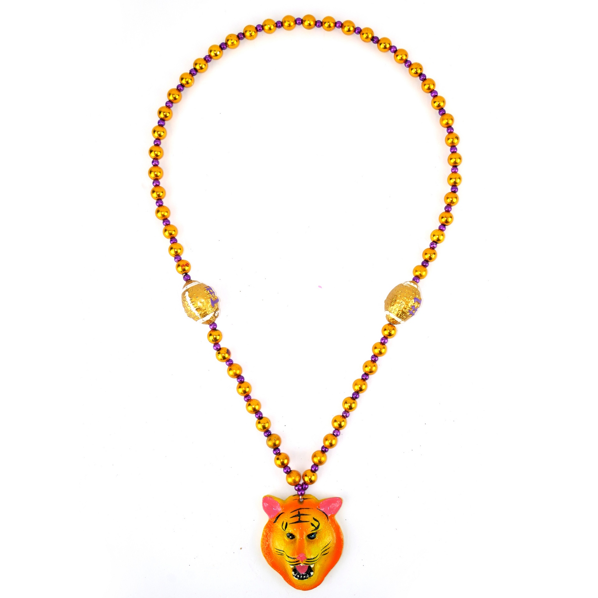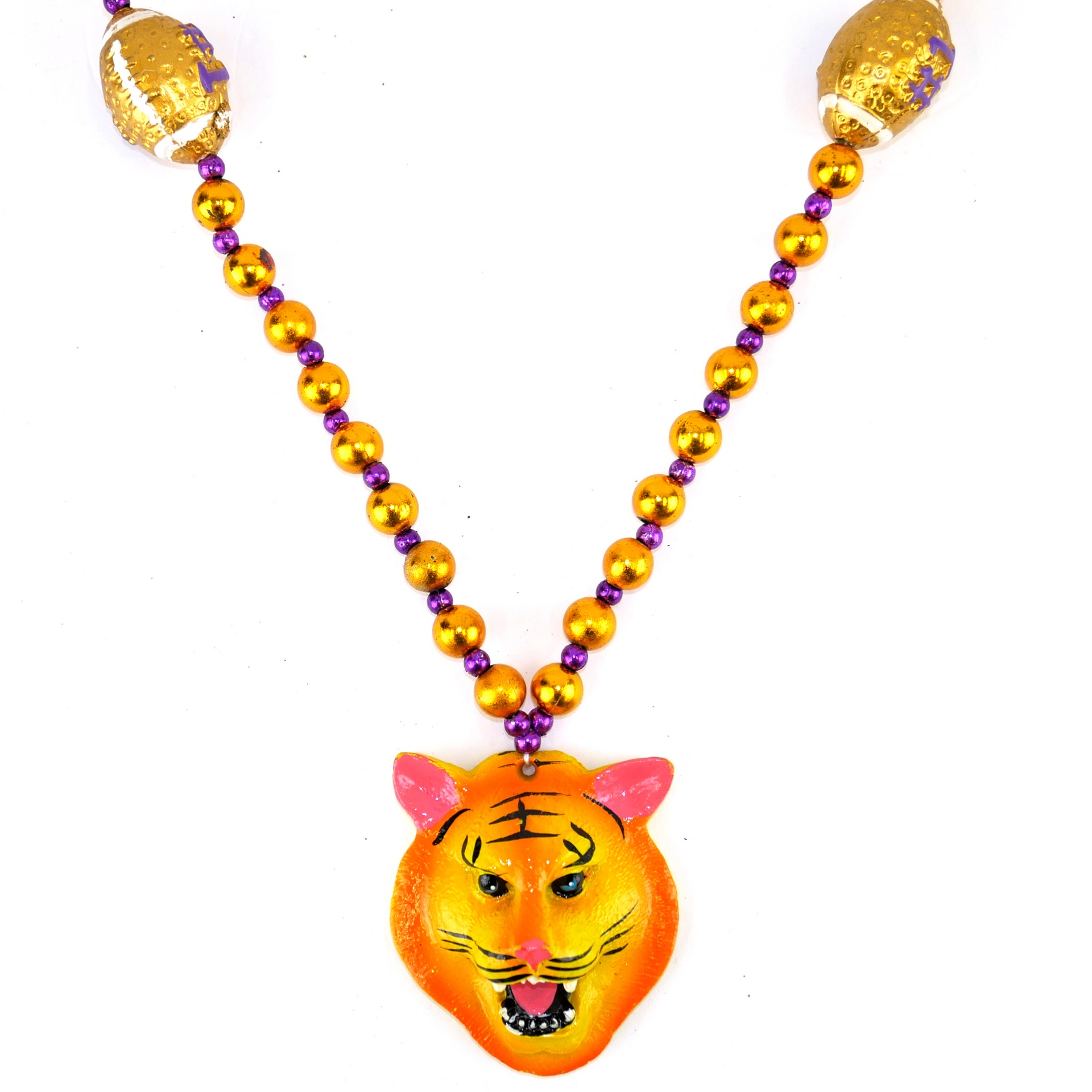 Tiger head medallions with 2 pc #1 football accents on gold and purple beads