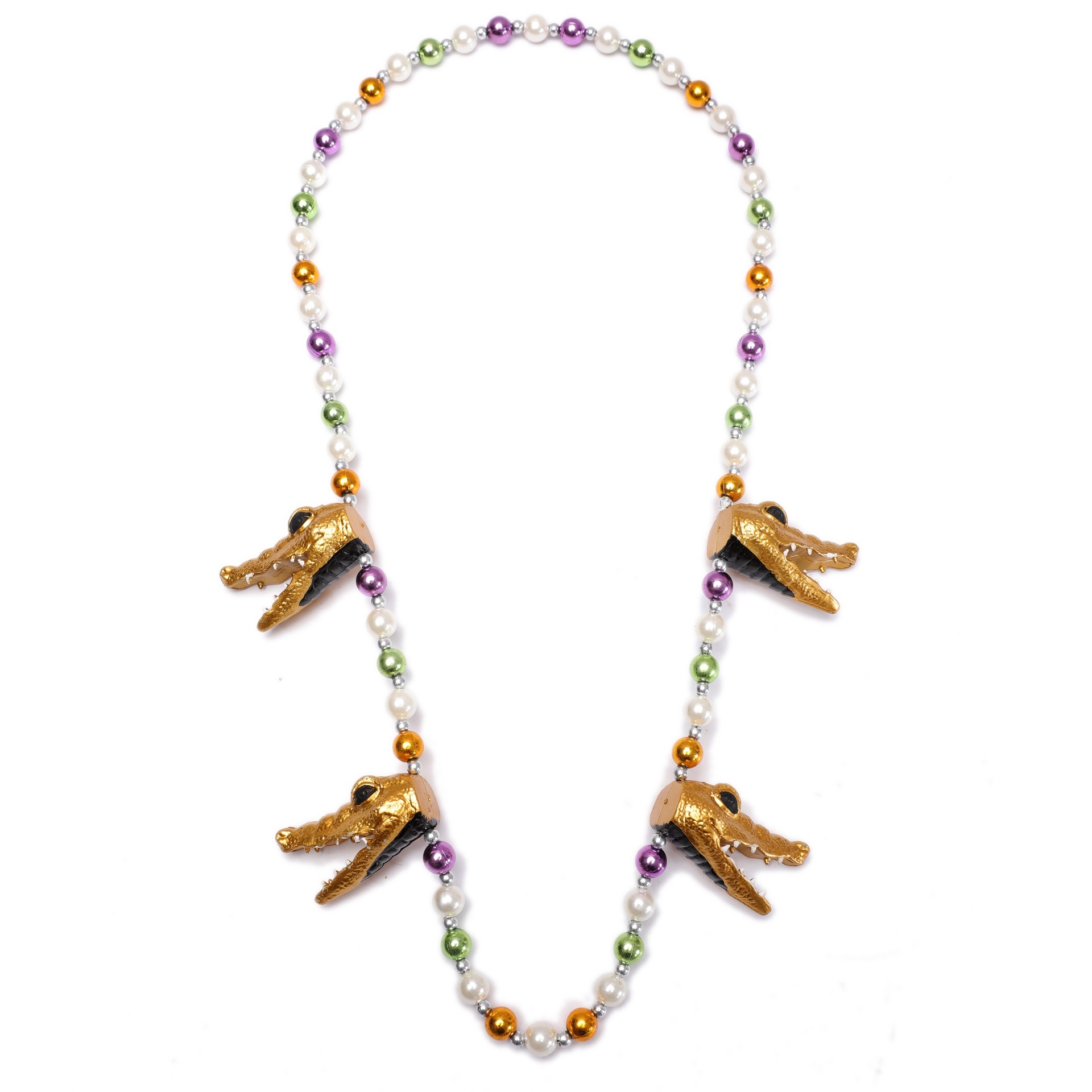 4 pc Gold open mouth gator head on purple, green and gold beads