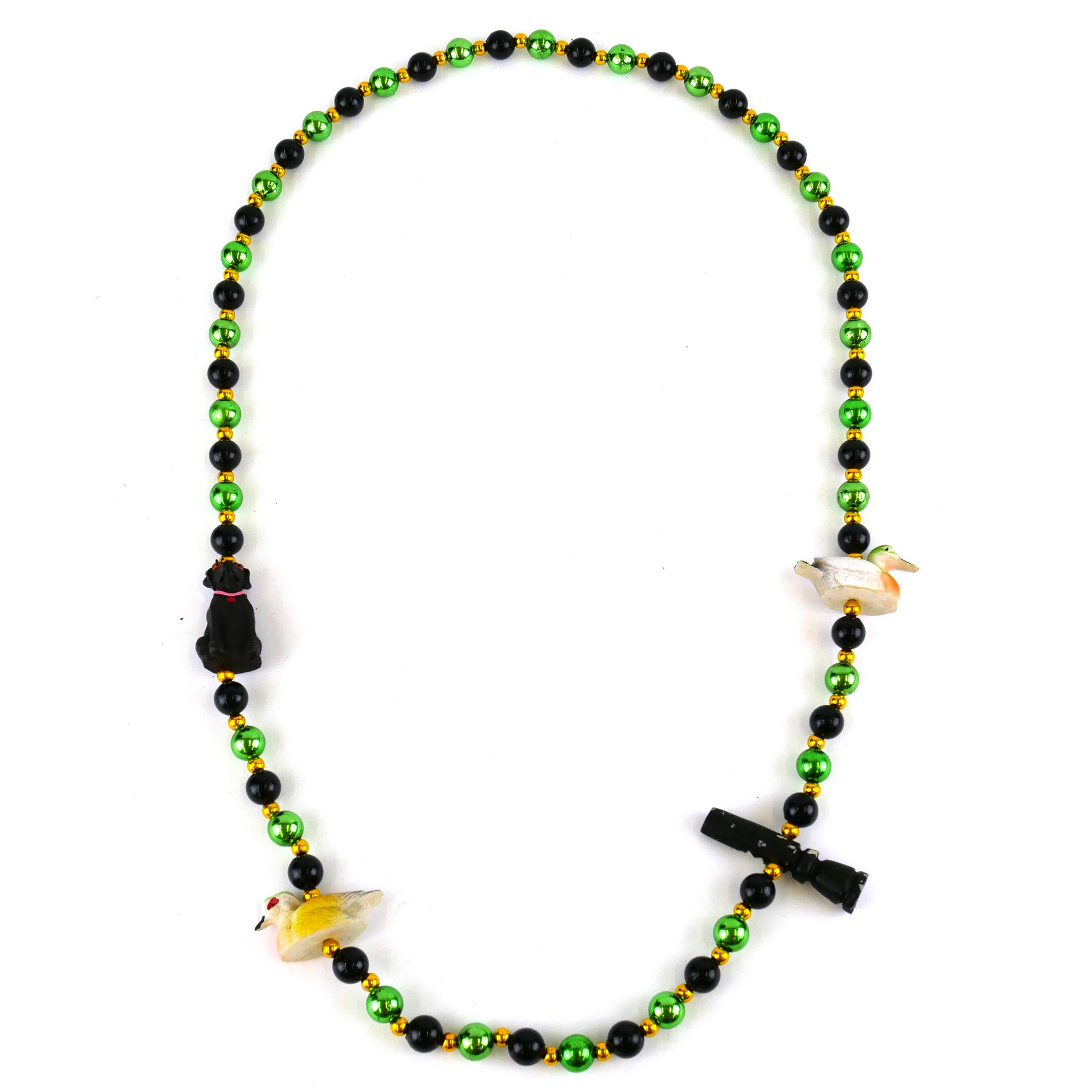 4 pc Hunting dog with ducks and binoculars on black and green beads