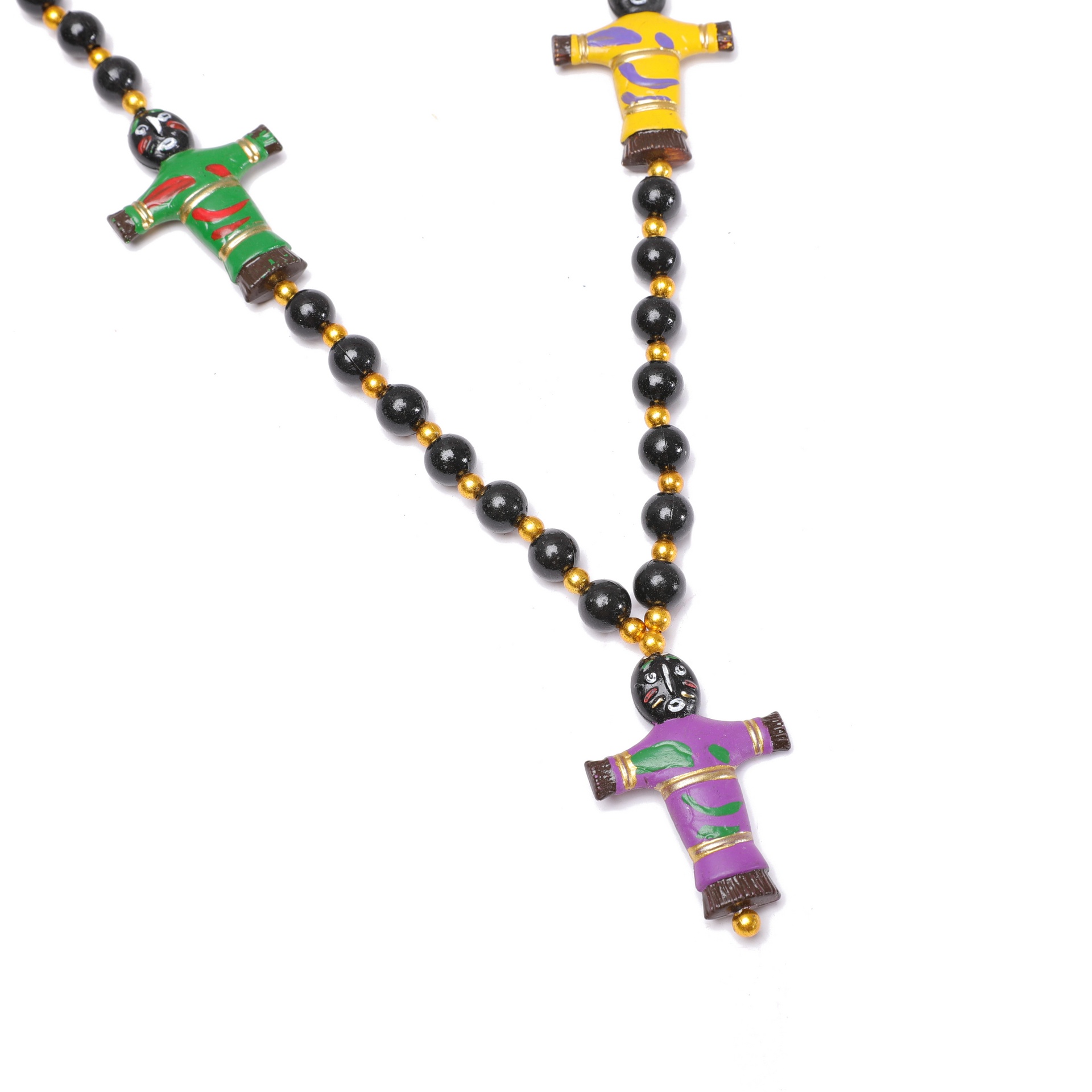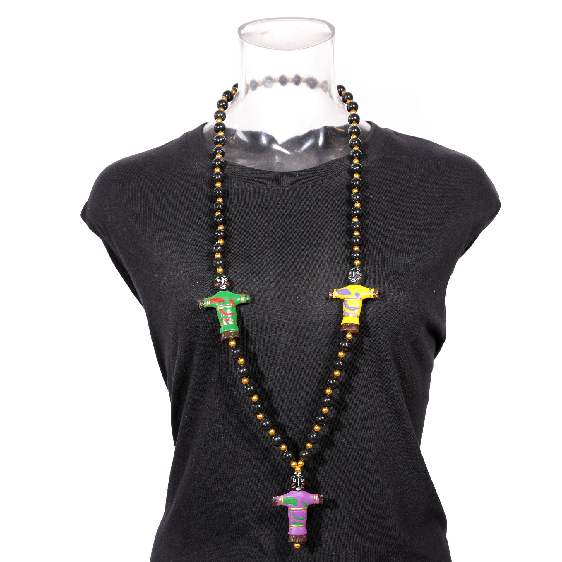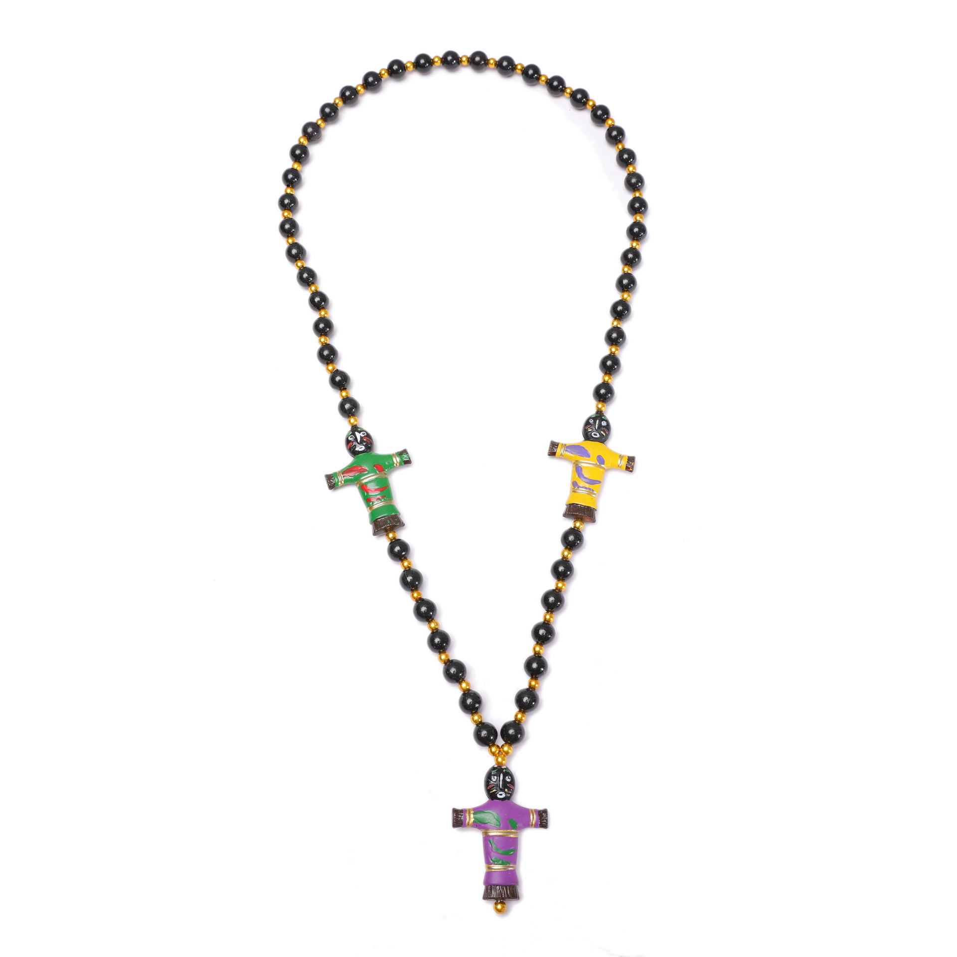 3 pc Purple, green and gold Voodoo dolls on purple, green and gold beads