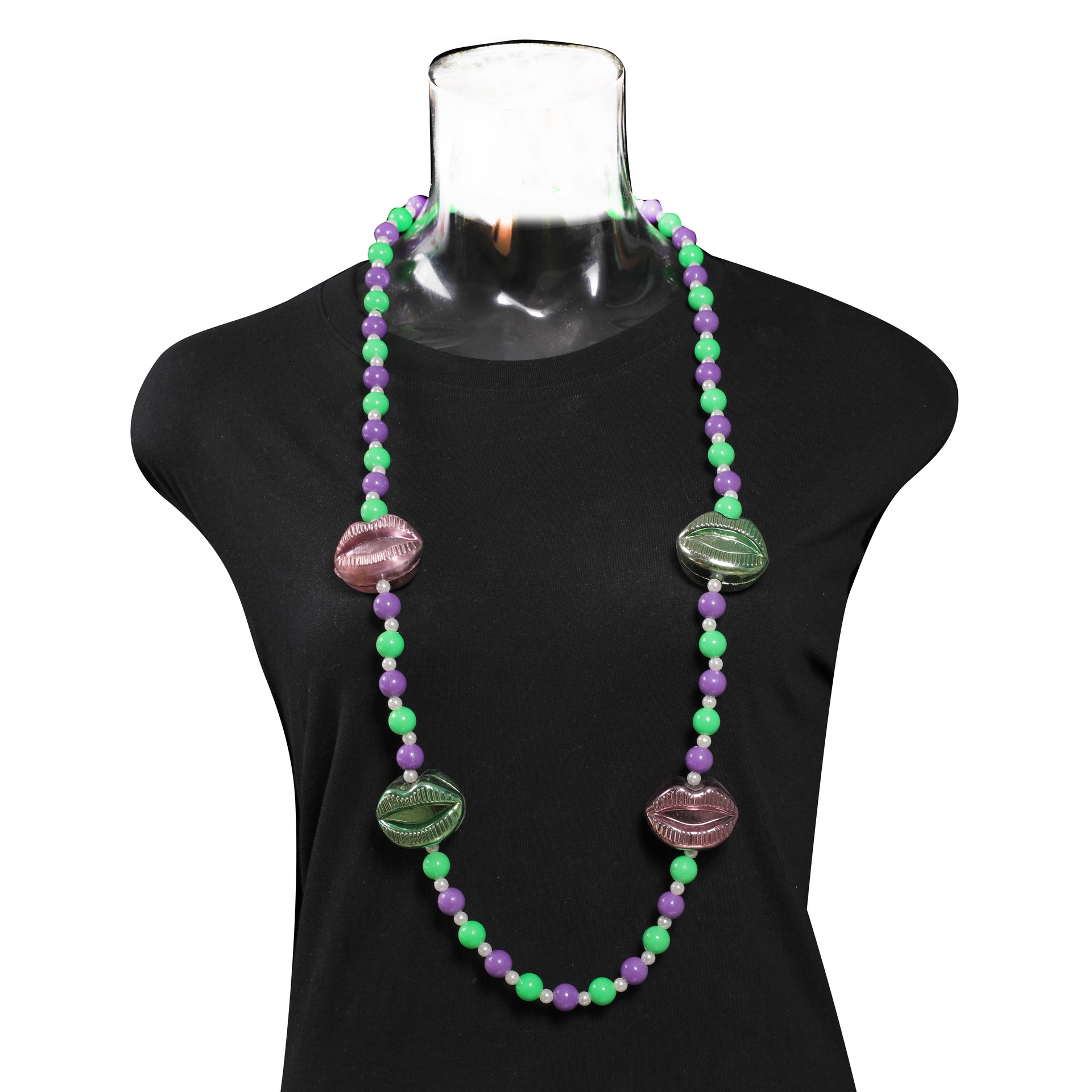4 pc purple and green lips on purple and green beads