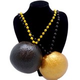 Black and white tribal mask with 2 pc gold coconut accents on black and gold beads