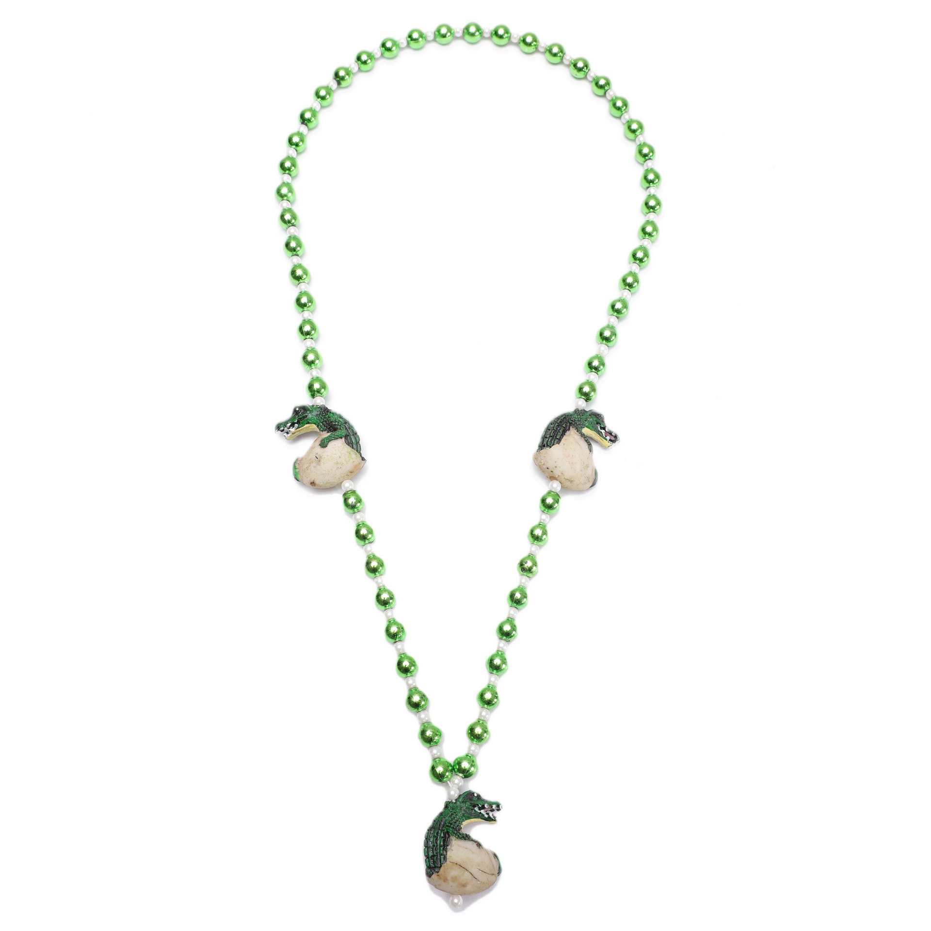 4 pc Hatching gator egg on green beads