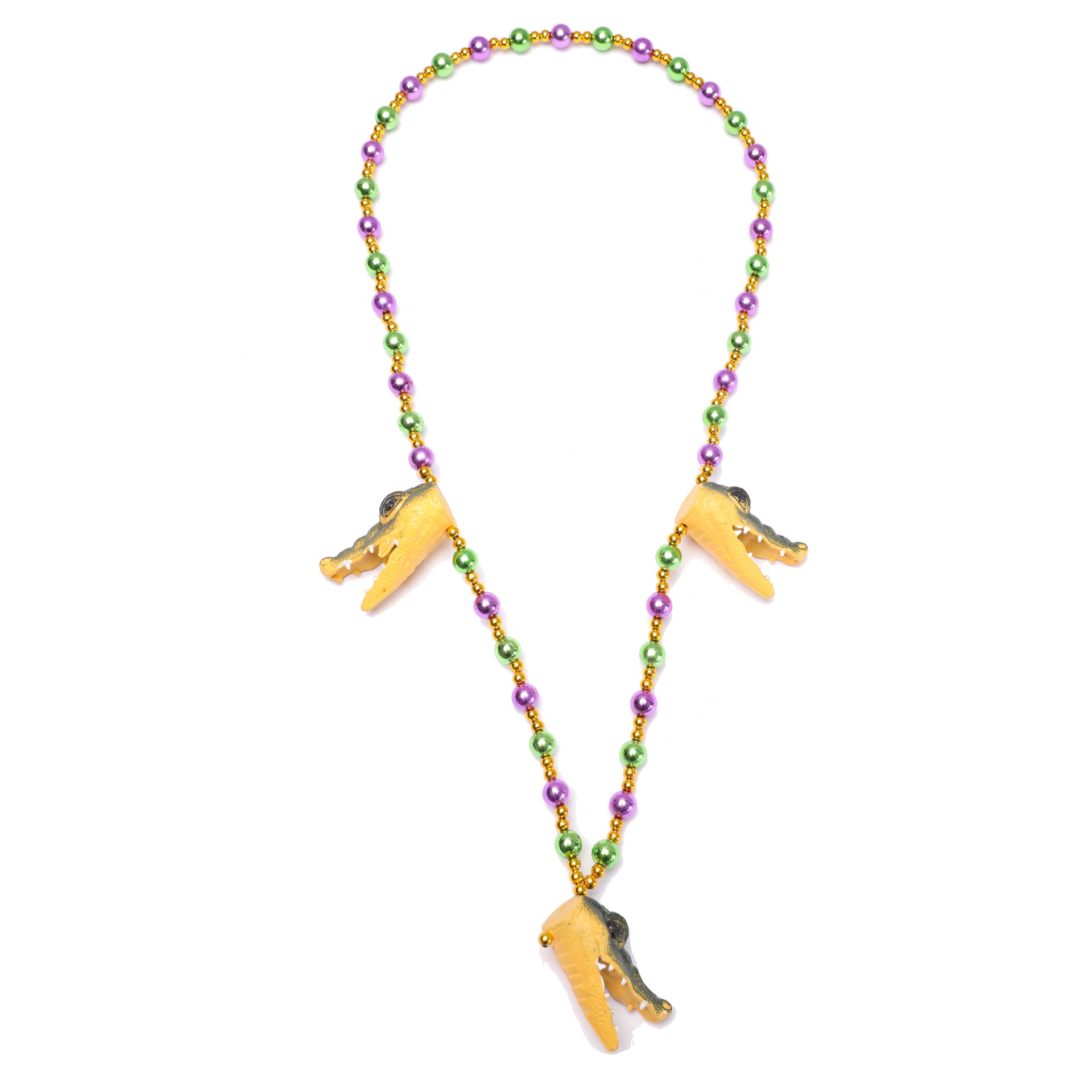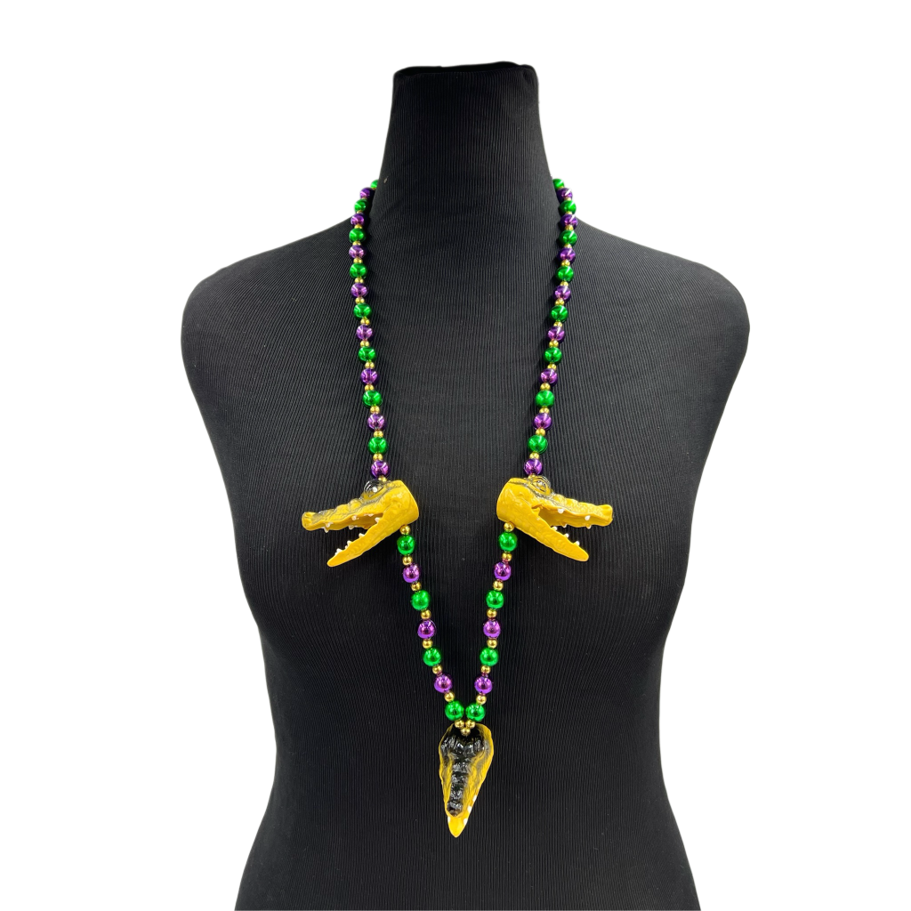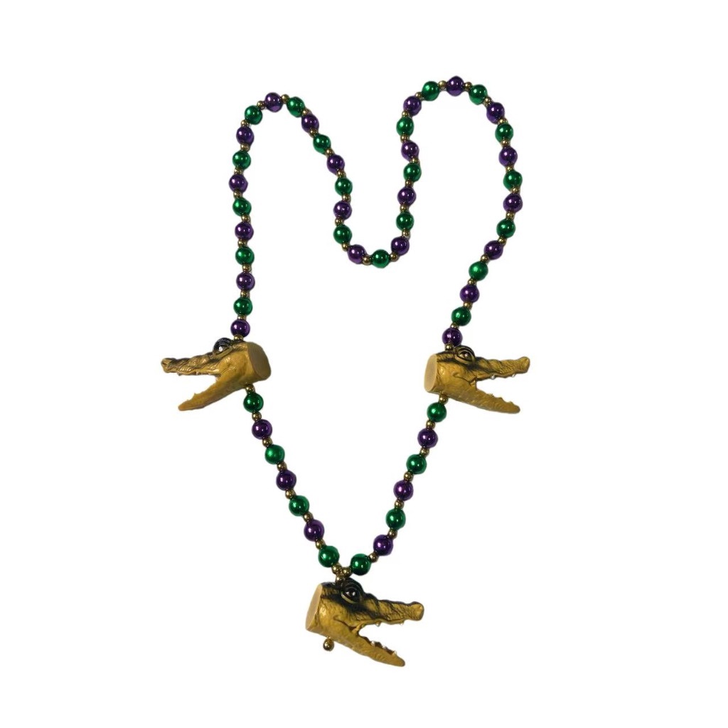 3 pc Green open mouth gator head on pearl, purple, green and gold beads