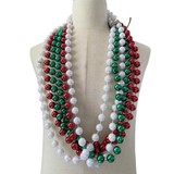 48"x12mm Metallic Green, white and red throw beads in zipper bag (10dz)