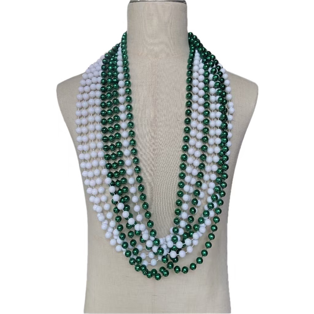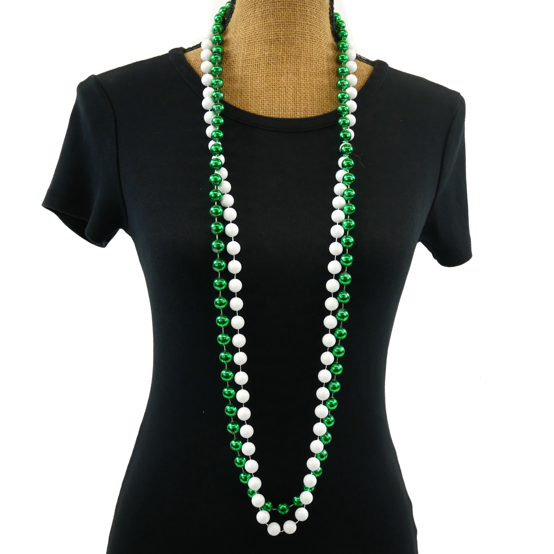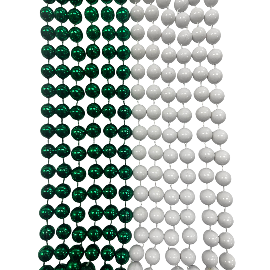 48"x12mm metallic green and white throw beads in zipper bag (10dz)