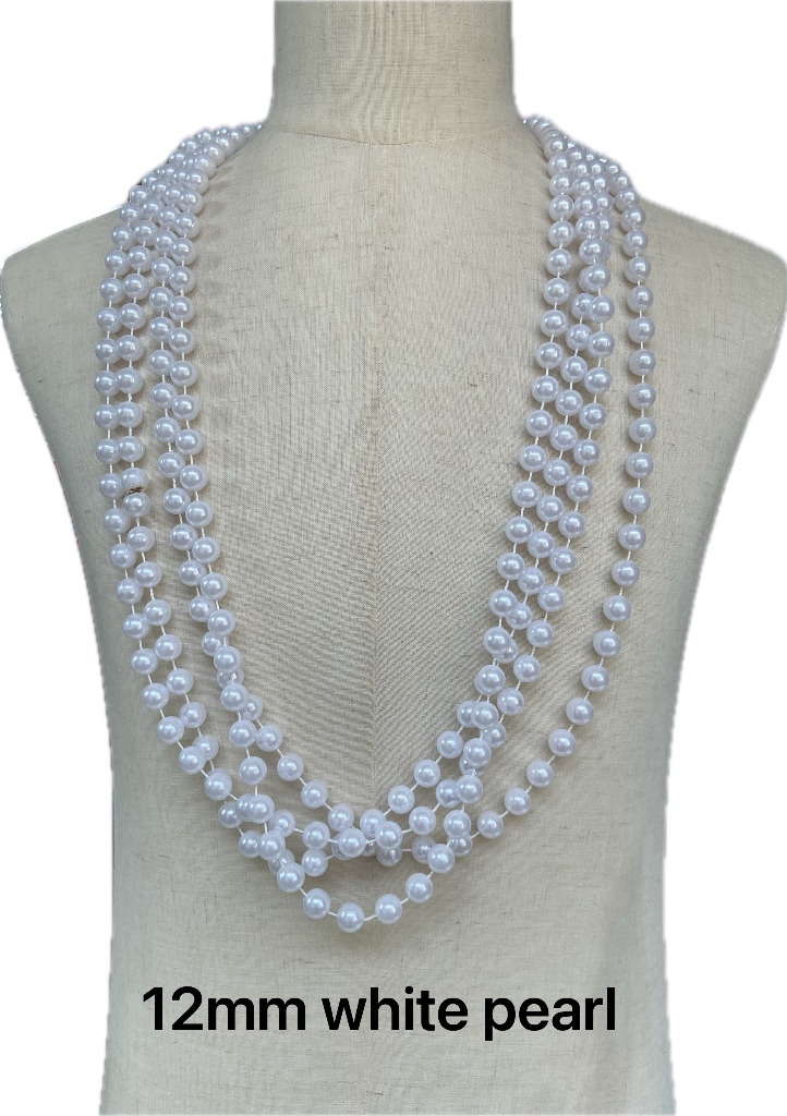 48"x12mm White pearl throw beads in zipper bag (10dz)