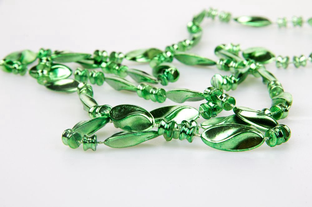 48" Twist beads Metallic green throw beads in zipper bag (20dz)