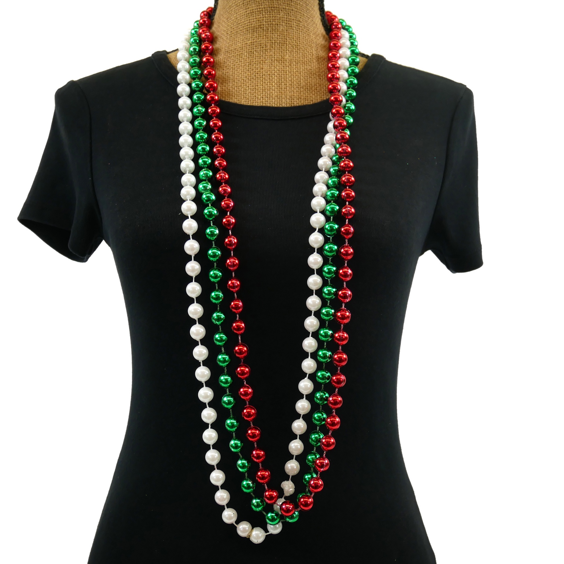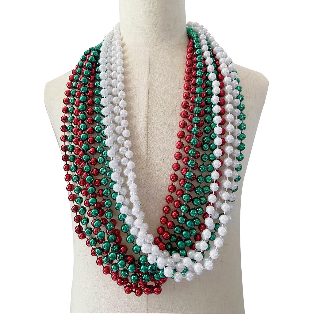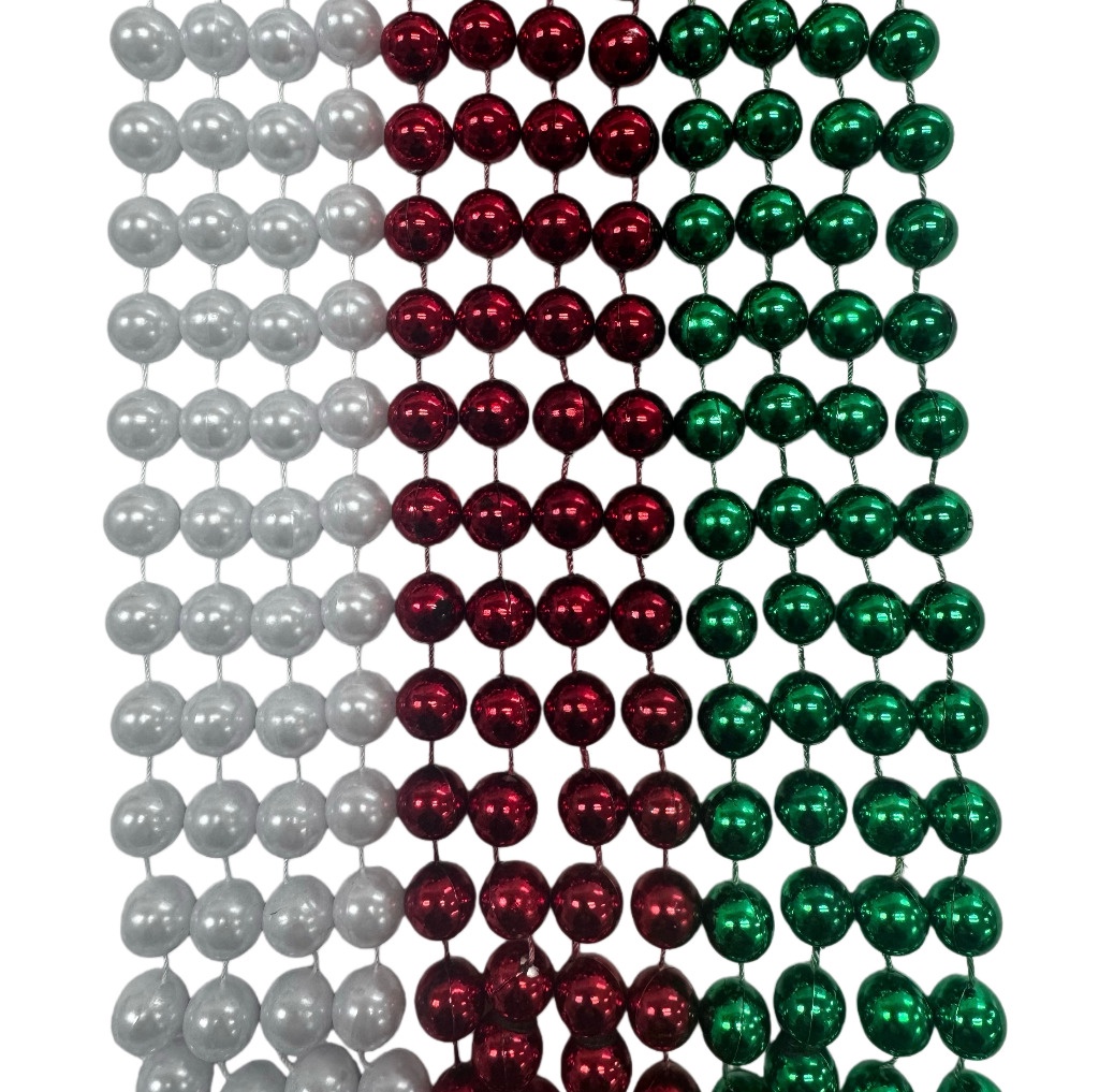 48"x12mm Metallic Green, white and red throw beads in zipper bag (10dz)
